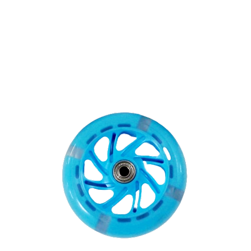 Llanta grande para threewheeler, en silicona, con luces que se activan con el movimiento, cuenta con sistema de balineras ABEC 608, disponible en color rojo y azul.
